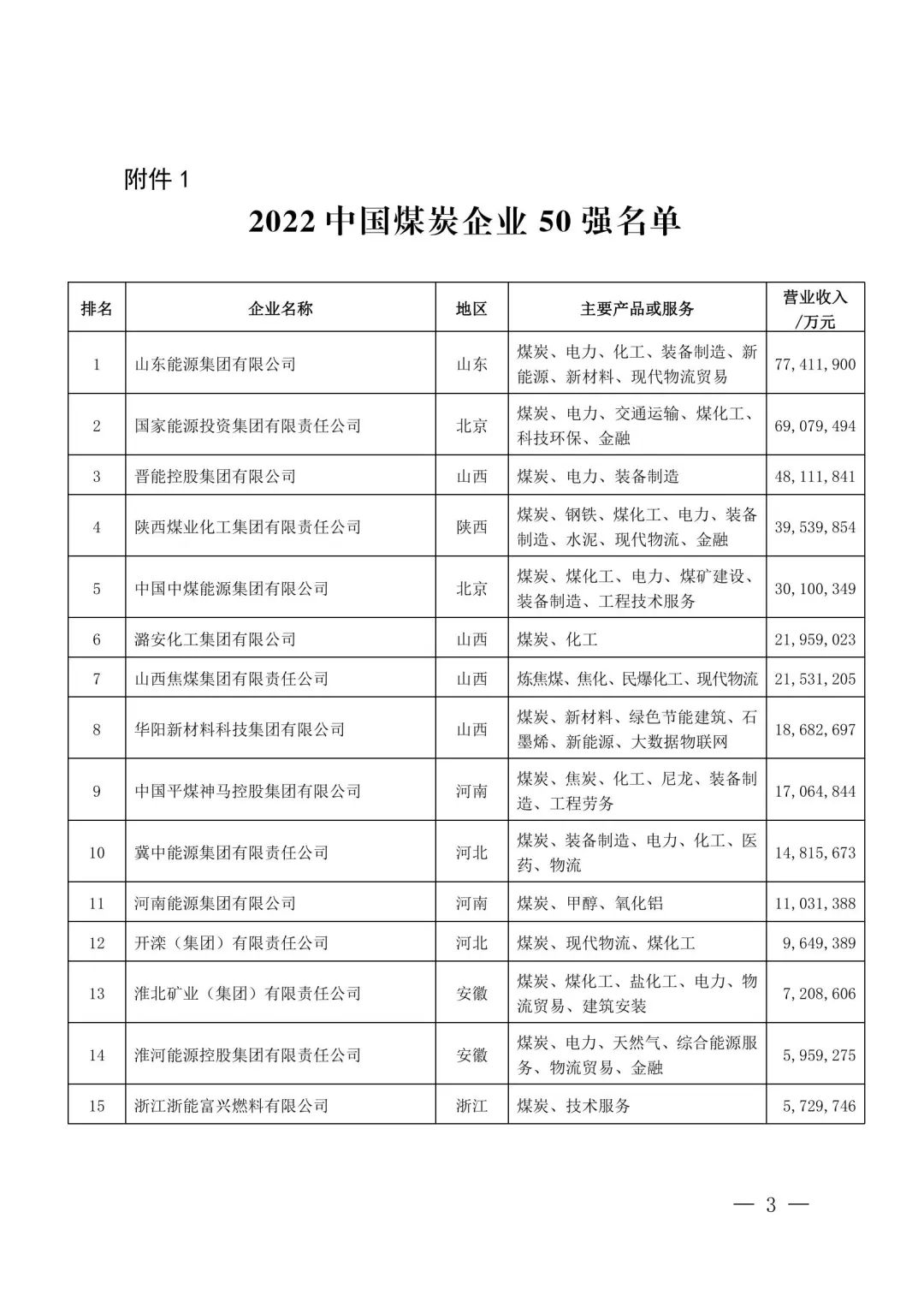 8月5日,中國煤炭工業(yè)協(xié)會發(fā)布2022中國煤炭企業(yè)50強和煤炭產(chǎn)量千萬噸以上企業(yè)名單。排名先后依據(jù)營業(yè)收入而非煤炭產(chǎn)量。