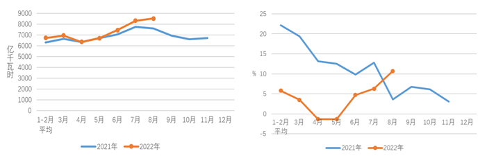 8月份,第一產(chǎn)業(yè)用電量132億千瓦時(shí),同比增長14.5%;第二產(chǎn)業(yè)用電量5107億千瓦時(shí),同比增長3.6%;第三產(chǎn)業(yè)用電量1612億千瓦時(shí),同比增長15.0%;城鄉(xiāng)居民生活用電量1669億千瓦時(shí),同比增長33.5%。