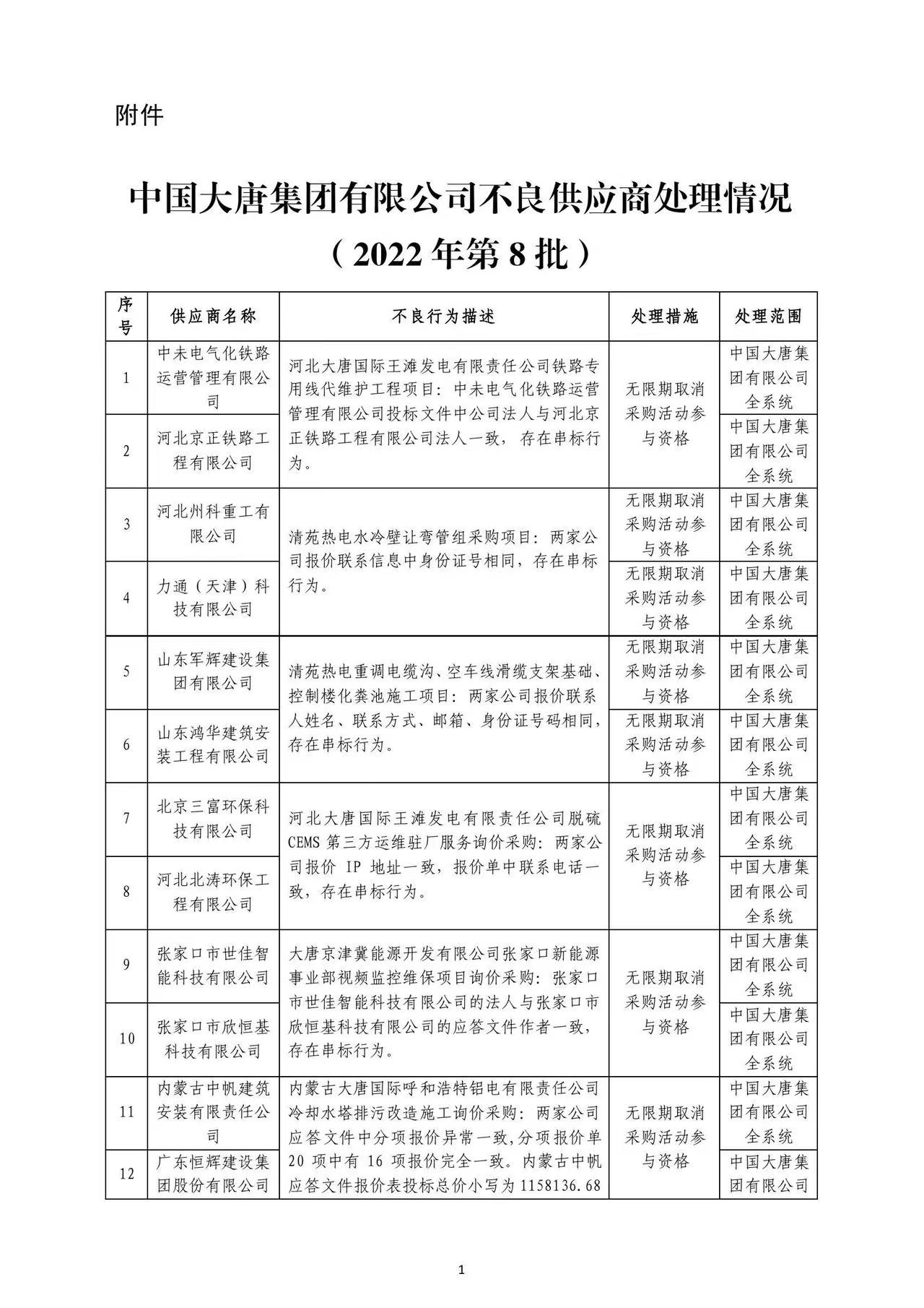 附件: 中國(guó)大唐集團(tuán)有限有限公司供應(yīng)商不良行為處理情況(2022年第8批)