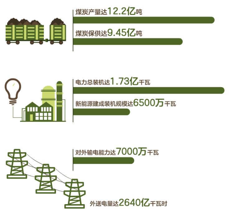 2022年,內(nèi)蒙古自治區(qū)能源經(jīng)濟(jì)多項(xiàng)指標(biāo)在全國(guó)保持領(lǐng)先——煤炭產(chǎn)量達(dá)到12.2億噸,電力總裝機(jī)達(dá)到1.73億千瓦,新能源建成裝機(jī)規(guī)模達(dá)到6500萬(wàn)千瓦,煤炭保供達(dá)到9.45億噸,外送電量達(dá)到2640億千瓦時(shí),對(duì)外輸電能力達(dá)7000萬(wàn)千瓦。