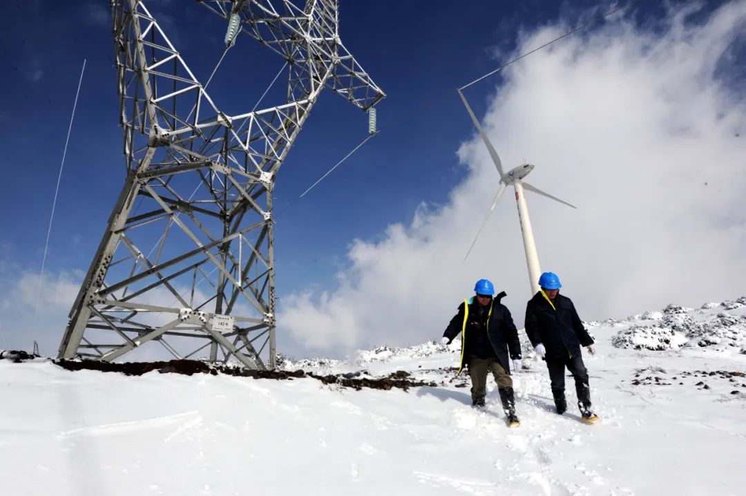 南方電網(wǎng)用“一張表”推進各個治理主體履職盡責。圖為南網(wǎng)貴州六盤水供電局員工在海拔2500多米的六盤水市四格風電場巡視檢查風力發(fā)電輸出線路。(李泵 攝)