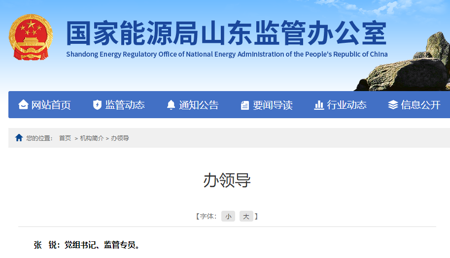 國(guó)家能源局山東監(jiān)管辦公室官網(wǎng)顯示,張銳已任國(guó)家能源局山東監(jiān)管辦公室黨組書(shū)記、監(jiān)管專員。