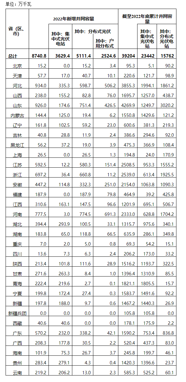 3.2022年部分省(自治區(qū)、直轄市)裝機有退運減容,截至2022年底累計并網容量按當年凈增并網容量統(tǒng)計。