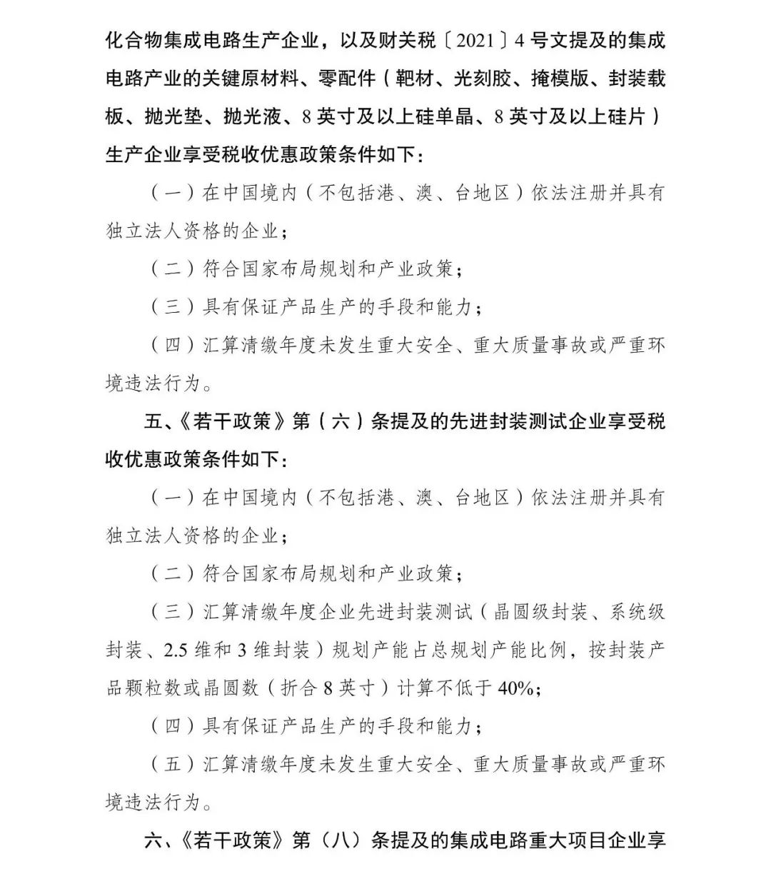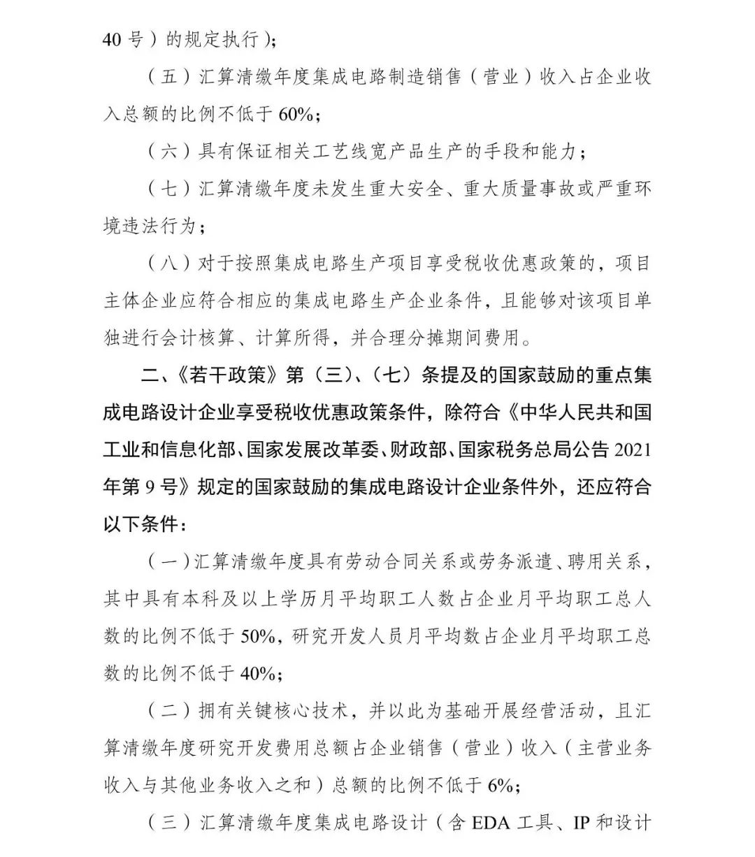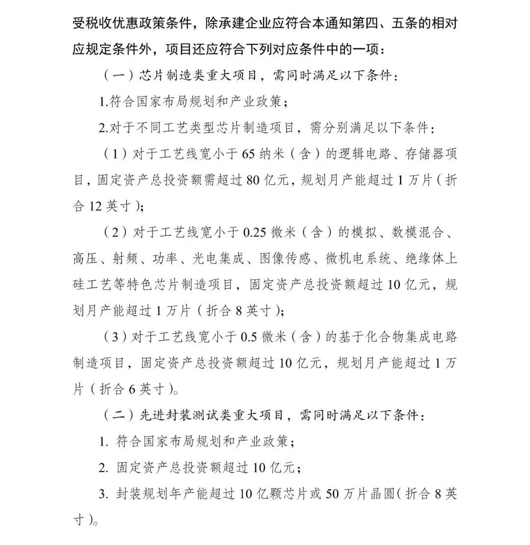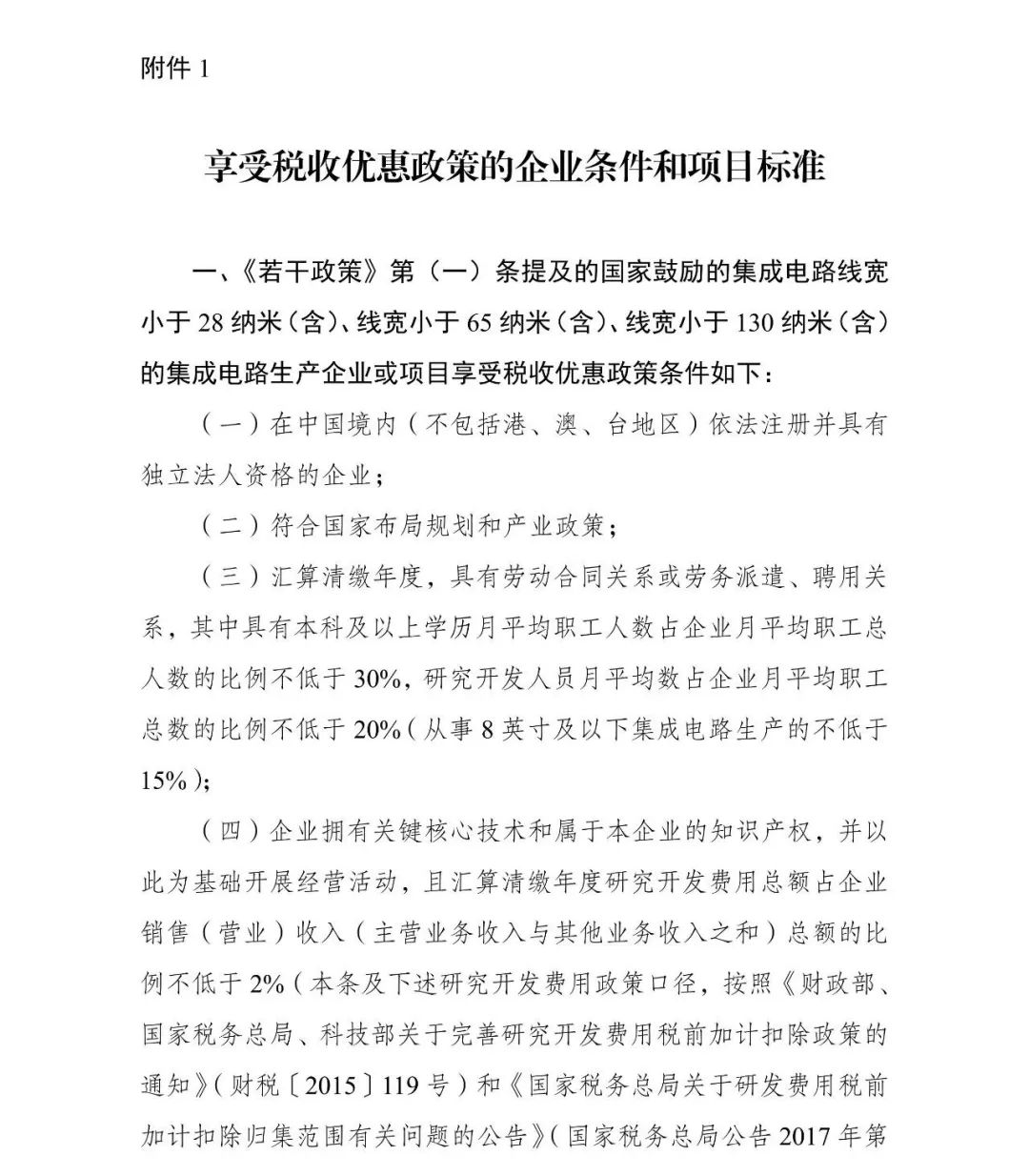 為促進我國集成電路產(chǎn)業(yè)持續(xù)健康發(fā)展,根據(jù)《國務(wù)院關(guān)于印發(fā)新時期促進集成電路產(chǎn)業(yè)和軟件產(chǎn)業(yè)高質(zhì)量發(fā)展若干政策的通知》(國發(fā)〔2020〕8號,以下簡稱《若干政策》)及其配套政策有關(guān)規(guī)定,經(jīng)研究,2023年享受稅收優(yōu)惠政策的集成電路企業(yè)或項目、軟件企業(yè)清單(以下簡稱“清單”)制定工作,延用2022年清單制定程序、享受稅收優(yōu)惠政策的企業(yè)條件和項目標準。現(xiàn)就有關(guān)事項通知如下: