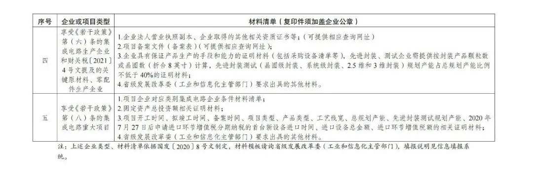 3.享受稅收優(yōu)惠政策的集成電路企業(yè)、項目和軟件企業(yè)提交材料明細表