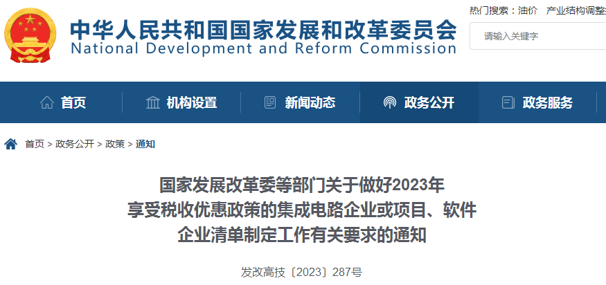 國家發(fā)展改革委等部門關(guān)于做好2023年享受稅收優(yōu)惠政策的集成電路企業(yè)或項目、軟件企業(yè)清單制定工作有關(guān)要求的通知