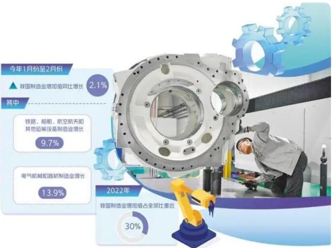 國家統(tǒng)計局最新數(shù)據(jù)顯示,今年1月份至2月份,我國制造業(yè)增加值同比增長2.1%。其中,化學原料和化學制品制造業(yè)增長7.8%,鐵路、船舶、航空航天和其他運輸設(shè)備制造業(yè)增長9.7%,電氣機械和器材制造業(yè)增長13.9%,表現(xiàn)亮眼。