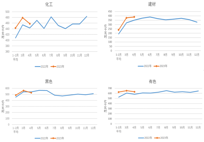 圖4 2022、2023年重點(diǎn)行業(yè)分月用電量情況