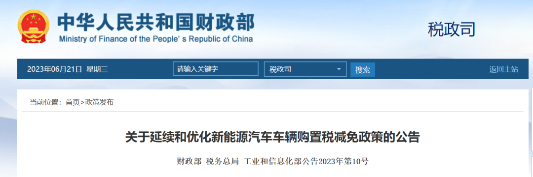 關(guān)于延續(xù)和優(yōu)化新能源汽車車輛購置稅減免政策的公告