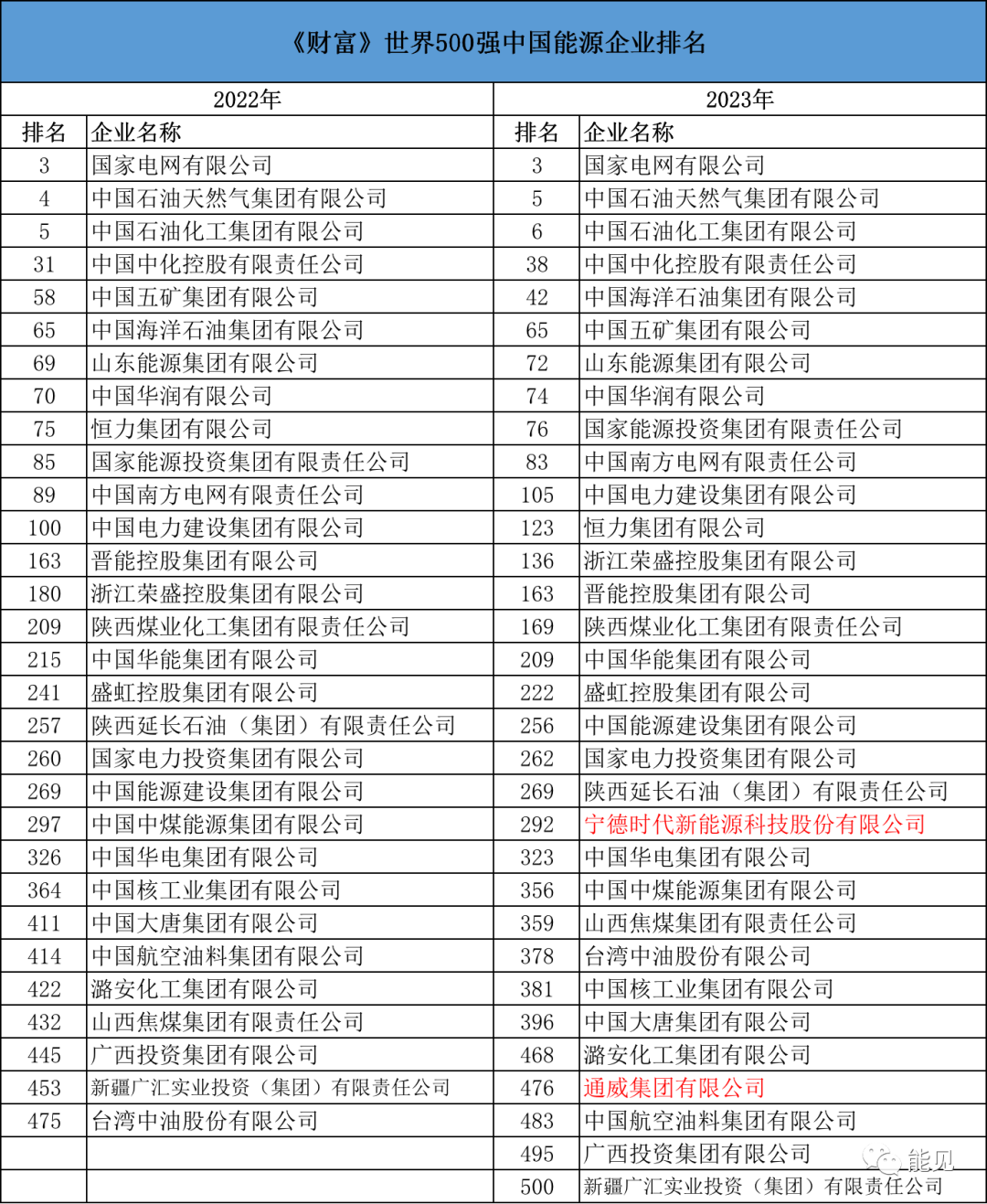 8月2日,《財富》世界500強排行榜發(fā)布。今年共有142家中國企業(yè)上榜,其中,能源企業(yè)上榜數(shù)量為32家,比去年多了2家,新上榜的兩家企業(yè)分別是寧德時代新能源科技股份有限公司和通威集團有限公司。電力央企中,2023年排名和2022年相比:國家電網(wǎng),排名第3,保持不變國家能源,排名76,比去年排名85上升9位南方電網(wǎng),排名83,比去年排名89上升6位
