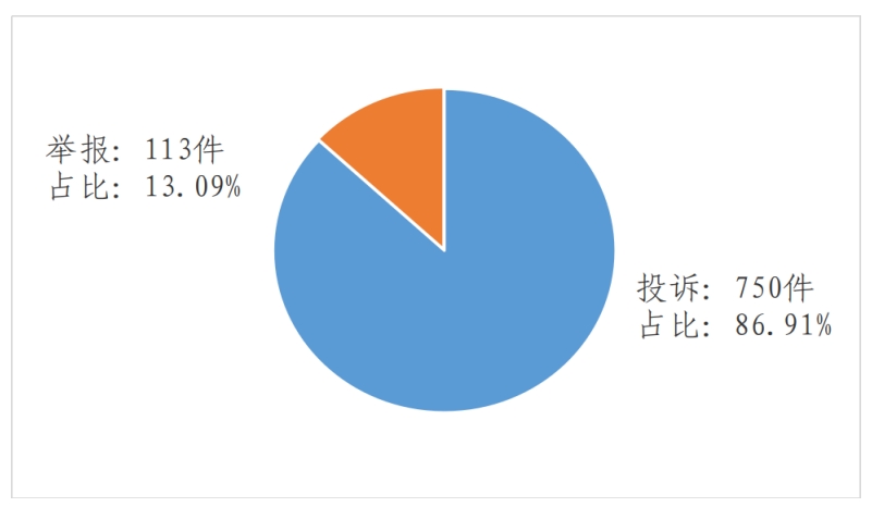 2023年9月,12398熱線共接收投訴舉報(bào)863件,環(huán)比下降25.99%、同比下降8.19%。其中:投訴750件,環(huán)比下降26.04%、同比下降11.35%;舉報(bào)113件,環(huán)比下降25.66%、同比增長20.21%。