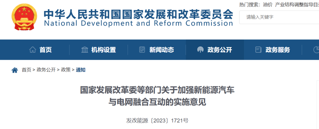 國家發(fā)展改革委等部門關(guān)于加強新能源汽車與電網(wǎng)融合互動的實施意見