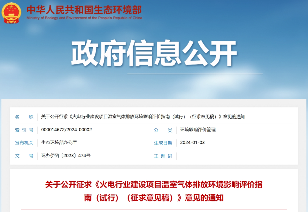 1月3日,生態(tài)環(huán)保部發(fā)布關(guān)于公開征求《火電行業(yè)建設(shè)項(xiàng)目溫室氣體排放環(huán)境影響評(píng)價(jià)指南(試行)(征求意見稿)》意見的通知。