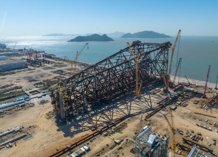 我國(guó)自主設(shè)計(jì)建造的深水導(dǎo)管架“?;?hào)”建設(shè)完工。“?;?hào)”導(dǎo)管架總高338米,總重達(dá)3.7萬(wàn)噸,均刷新亞洲紀(jì)錄,將與“海洋石油122”共同服役于我國(guó)首個(gè)深水油田流花11-1/4-1油田,標(biāo)志我國(guó)海洋深水油氣裝備設(shè)計(jì)建造能力實(shí)現(xiàn)穩(wěn)步提升。