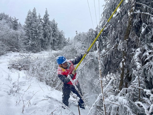 國(guó)網(wǎng)重慶電力員工清理10千伏桐楠線樹障。