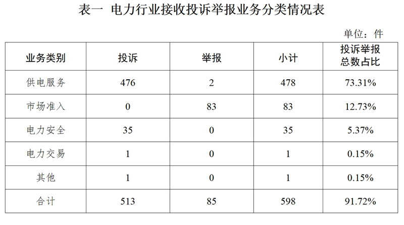 電力行業(yè)排在首位,數(shù)量為598件、占投訴舉報(bào)總數(shù)的91.72%,主要集中在供電服務(wù)、市場準(zhǔn)入、電力安全等方面。