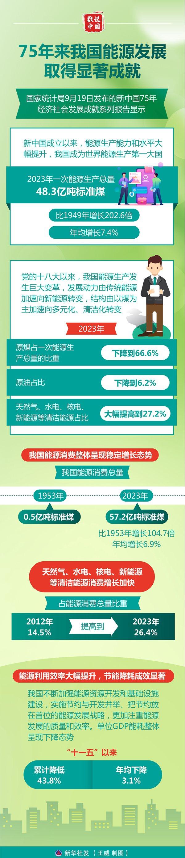 國家統(tǒng)計局19日發(fā)布的新中國75年經(jīng)濟社會發(fā)展成就系列報告顯示,75年來,我國能源發(fā)展取得顯著成就,供應保障能力持續(xù)增強,綠色低碳轉(zhuǎn)型深入推進,能源利用效率不斷提升,節(jié)能降耗成效明顯。