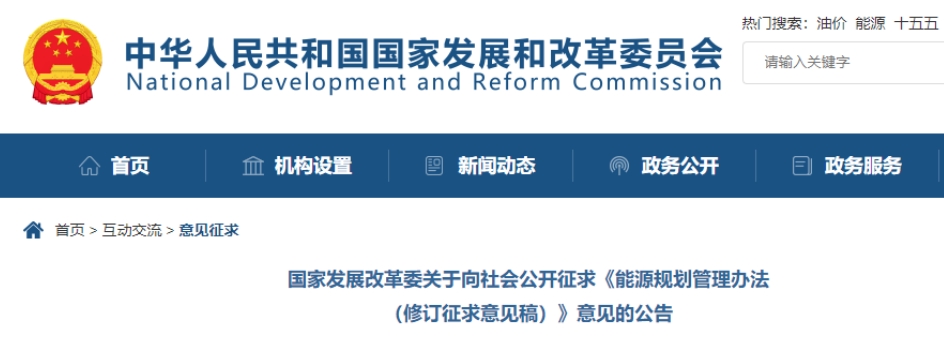 為貫徹落實黨的二十屆三中全會精神,進一步健全能源規(guī)劃制度體系,按照《中華人民共和國能源法》有關規(guī)定,國家能源局修訂形成了《能源規(guī)劃管理辦法(修訂征求意見稿)》,現向社會公開征求意見。公眾可通過以下途徑和方式提出反饋意見: