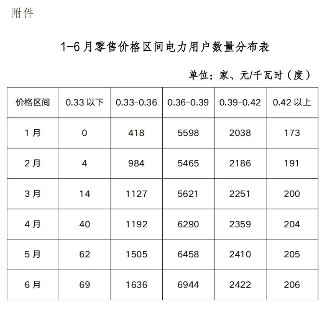 附件:1-6月零售價(jià)格區(qū)間電力用戶數(shù)量分布表