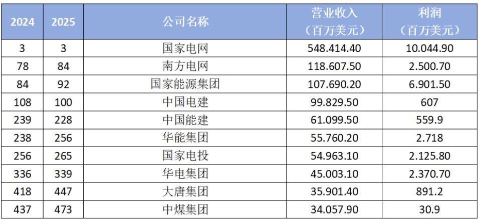電力央企《財(cái)富》世界500強(qiáng)最新排名!
