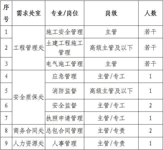 (2)副科級(jí)崗位:報(bào)名人員為副科級(jí)的,對(duì)任職年限不作要求;報(bào)名人員為一般員工的,需在主管/專工級(jí)崗位工作滿3年及以上。