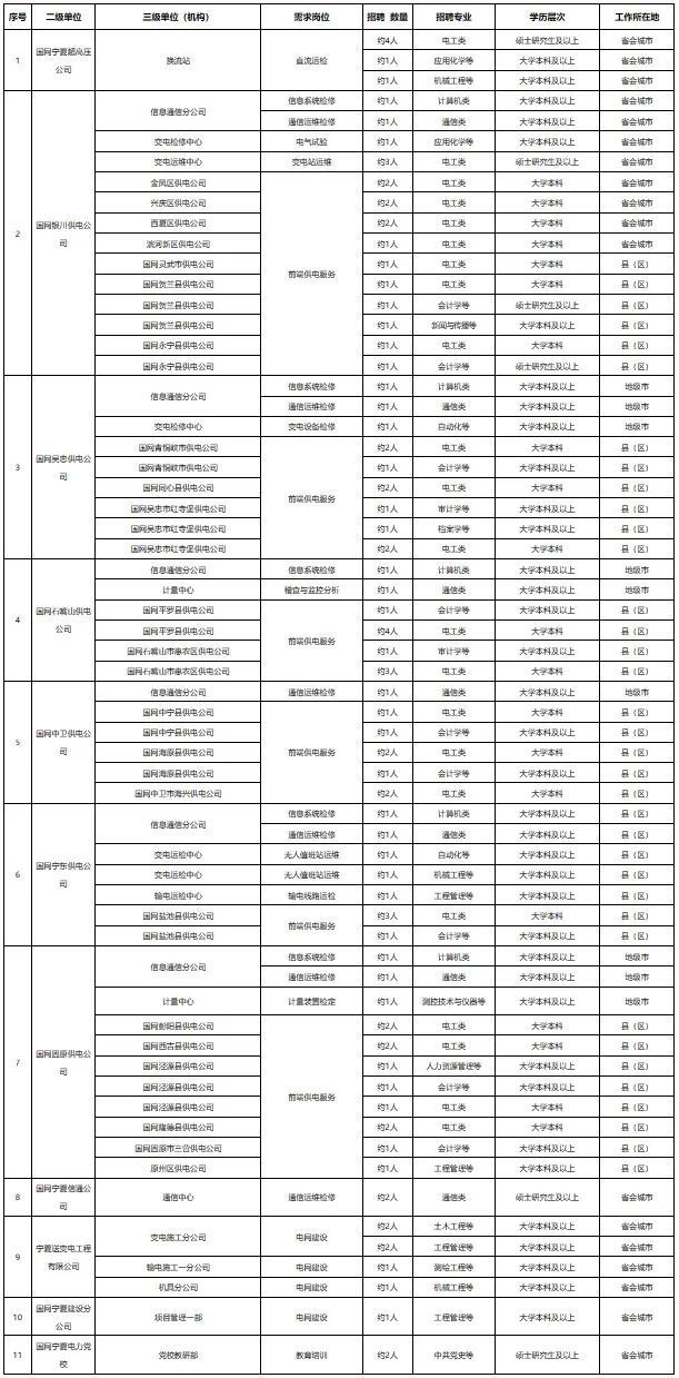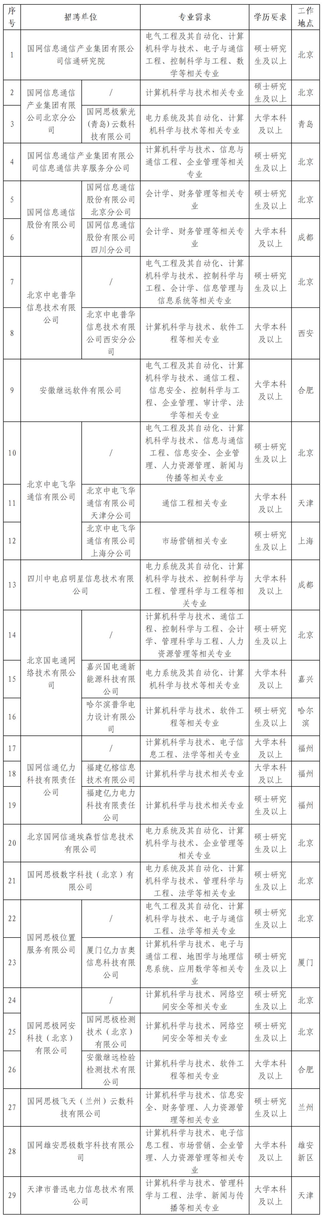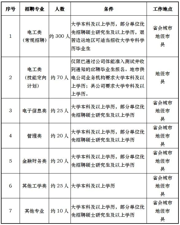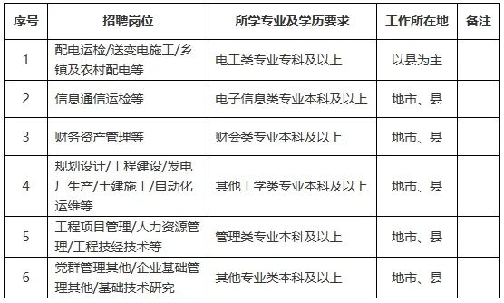 (二)招聘崗位:規(guī)劃、建設(shè)、運?、運維檢修、營銷、信息通信、物資和培訓(xùn)教育等專業(yè)?線崗位。