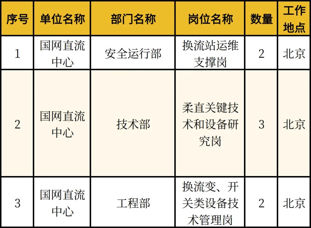 具體招聘崗位和任職資格要求詳見(jiàn)附件1《國(guó)網(wǎng)直流中心系統(tǒng)內(nèi)招聘崗位及條件情況表》。