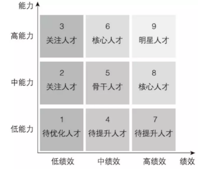 無論個人還是組織,提升能力的終極目標(biāo)都是為了超越自我,實(shí)現(xiàn)目標(biāo),因此高能力一定要轉(zhuǎn)化為高績效。每年我們都會做人才盤點(diǎn),其作用之一就是要識別出不同能力和績效表現(xiàn)的同事。下圖九宮格是人才盤點(diǎn)所使用的工具之一,其中9號區(qū)域的就是人見人愛又省心的“明星員工”。對于4號、7號區(qū)域的同事需要提升其能力,而對于2號、3號區(qū)域的同事則要特別關(guān)注,為什么他們的高能力沒有轉(zhuǎn)化為高績效?是人崗配置不合適嗎?是組織流程阻礙了個人價值發(fā)揮嗎?還是沒有點(diǎn)燃他們內(nèi)心的工作激情?