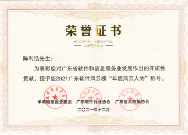 12月21日,以“新技術、新生態(tài)、新經(jīng)濟”為主題的第十屆粵港云計算大會暨第五屆粵港澳大灣區(qū)ICT大會在廣州舉辦。大會發(fā)布了2021廣東軟件風云榜,遠光軟件股份有限公司榮獲“卓越企業(yè)”獎項,公司董事長陳利浩獲評“年度風云人物”、高級副總裁李美平獲評“卓越技術工匠”。