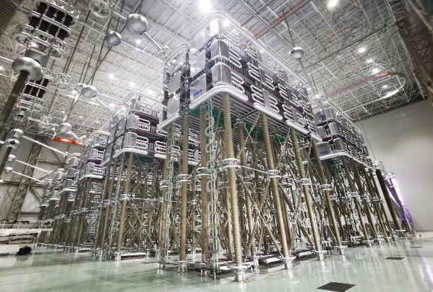柳北換流站作為昆柳龍直流工程的一環(huán),承接了從昆北到龍門的送電任務(wù)。特變電工承擔(dān)柳北極1換流站設(shè)備研制與生產(chǎn)任務(wù),設(shè)備總?cè)萘繛?GW,涉及2個(gè)閥廳24個(gè)閥塔。作為柔性直流輸電技術(shù)的心臟——換流閥,是直流電和交流電相互轉(zhuǎn)換的橋梁,通過換流閥可以實(shí)現(xiàn)交流電和直流電的電壓(即:交直流電不同電壓等級(jí)之間互聯(lián)互相轉(zhuǎn)換)變換,可以實(shí)現(xiàn)送電功率(即:電容量大小)的變送,這在柔性直流主設(shè)備中技術(shù)含量最高、挑戰(zhàn)最大。