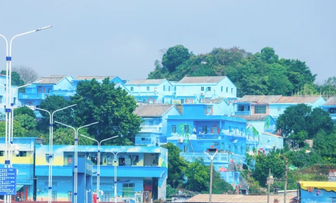 明朝期間,廣東省臺山市曾是“海上絲綢之路”的重要節(jié)點(diǎn)。中交四航局承建的臺山市海洋牧場廣海漁旅融合項(xiàng)目包括外立面修復(fù)、漁村升級等子工程,量身定制的海浪、椰樹等墻繪充分展現(xiàn)漁村的獨(dú)特風(fēng)貌,奠定了漁旅融合發(fā)展的底蘊(yùn),這片“藍(lán)色海洋”吸引眾多游客前來打卡,盡顯濱海旅游之美。