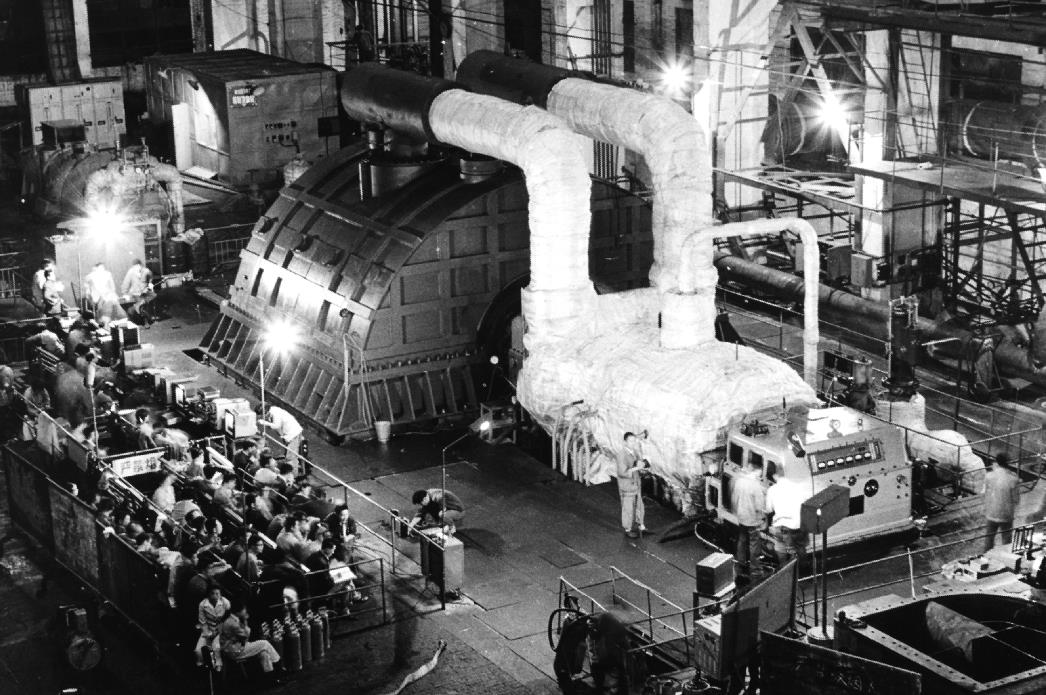 上個世紀(jì)八十年代,東方電氣集團自主研制的第一代東方“爭氣機”——30萬千瓦汽輪機在廠內(nèi)一次試車成功。