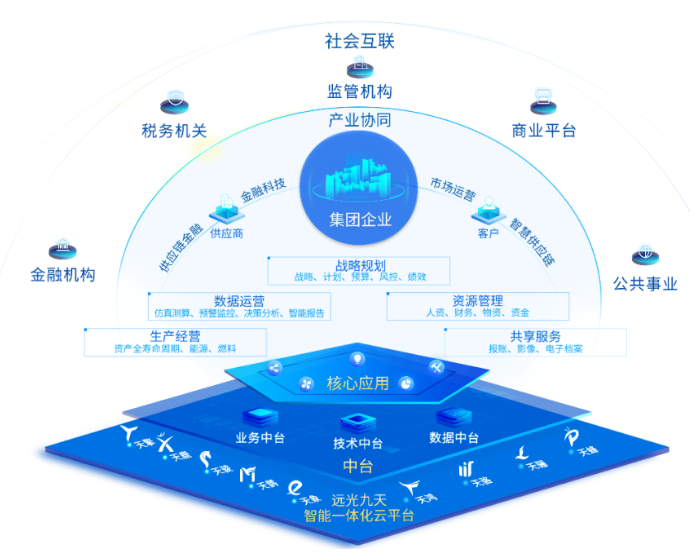 在傳統(tǒng)的企業(yè)內(nèi)部人力、物力、財(cái)力等資源要素管理基礎(chǔ)上,擴(kuò)展戰(zhàn)略規(guī)劃、生產(chǎn)經(jīng)營、共享服務(wù)、數(shù)據(jù)運(yùn)營等四個(gè)領(lǐng)域的核心應(yīng)用,將先進(jìn)數(shù)字技術(shù)與企業(yè)資源管理、業(yè)務(wù)運(yùn)營深度融合,通過一套系統(tǒng)同時(shí)滿足企業(yè)不同層級、不同業(yè)務(wù)領(lǐng)域的數(shù)字化需求。同時(shí),依托可擴(kuò)展的平臺能力,共享基于先進(jìn)業(yè)務(wù)實(shí)踐沉淀的新業(yè)務(wù)、新理念管理模型,彈性支撐業(yè)務(wù)發(fā)展,為全業(yè)務(wù)進(jìn)行賦能。