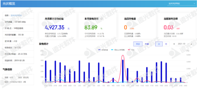 遠(yuǎn)光軟件園的屋頂分布式光伏發(fā)電站,可利用面積1238平方米,總裝機(jī)容量為107.665kWp,選用 305Wp 單晶硅組件共353塊,采用組串式逆變器2臺。系統(tǒng)年均發(fā)電量為105845kWh,可減少二氧化碳排放105.53噸。