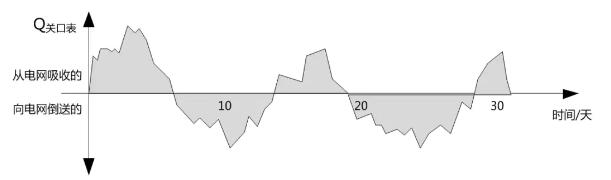 ▲注:月度總無功量=實時關口表計量值的絕對值累計求和 ( 為圖中陰影部分面積 )