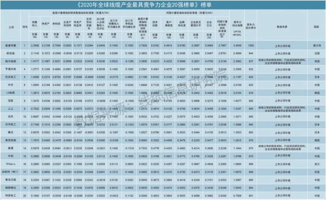 2020年全球線纜產(chǎn)業(yè)最具競爭力企業(yè)10強榜單第四位