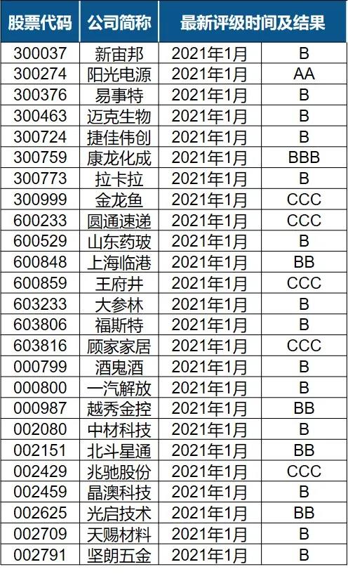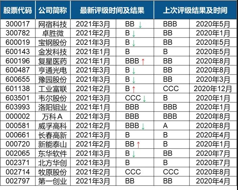 表:A股最新ESG評級調(diào)整結(jié)果