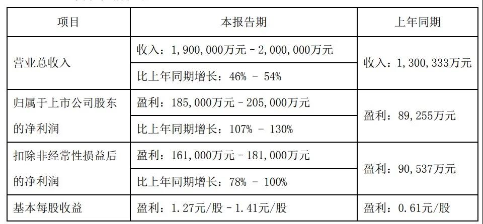 圖:陽光電源2020年業(yè)績預(yù)告情況表