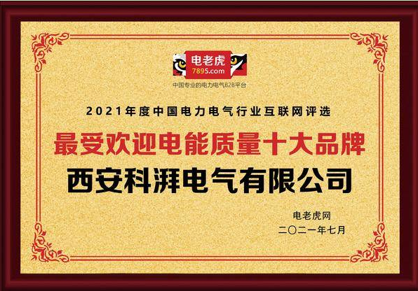 本次評選活動有近百家有實力的電能質(zhì)量生產(chǎn)企業(yè)參與,最終西安科湃電氣有限公司憑借創(chuàng)新的生產(chǎn)工藝、超強(qiáng)的品牌傳播、超高的人氣支持等榮獲2021年度中國電力電氣行業(yè)“最受歡迎電能質(zhì)量十大品牌”。