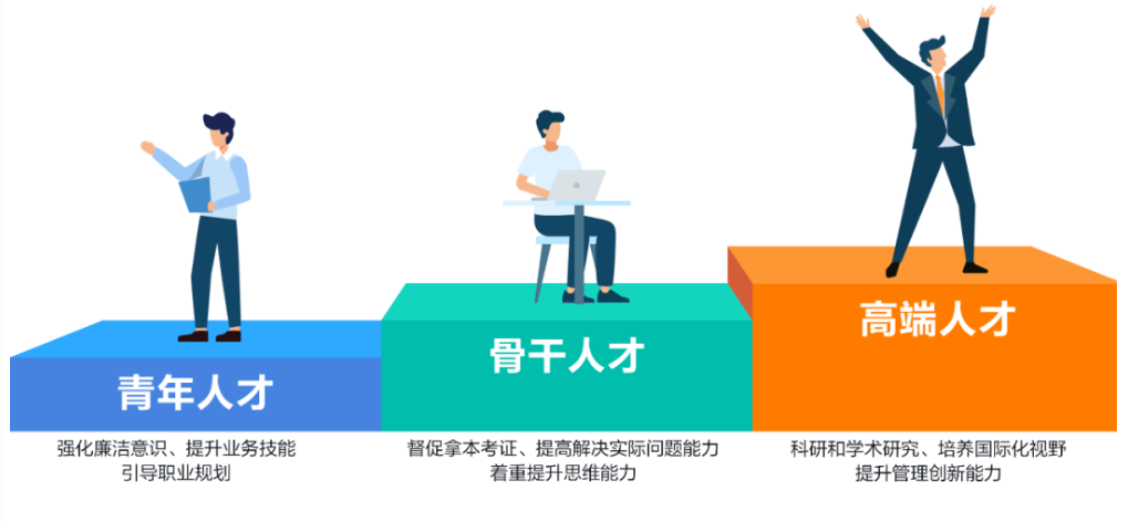 例如,某企業(yè)依托遠光培訓(xùn)云開展階段式培訓(xùn)提能,針對青年人才,通過“在線課程”提升人才專業(yè)技能、加強引導(dǎo)職業(yè)生涯規(guī)劃,充分激發(fā)其工作潛能;針對骨干人才,通過中高級會計師資格考試“模擬練習”,將理論、實踐學(xué)習有機結(jié)合,增強其科學(xué)思維能力、創(chuàng)新提效能力、風險管控能力、統(tǒng)籌協(xié)調(diào)能力、國際經(jīng)營能力;針對高端人才,通過“學(xué)習圈”開展科研和學(xué)術(shù)研討,學(xué)習新經(jīng)濟新業(yè)態(tài)新模式,進一步提升國際化視野和管理創(chuàng)新能力。在遠光培訓(xùn)云的助力下,該企業(yè)向各崗位輸送實干型人才200余人,中級以上職稱人數(shù)超過55%,副高級職稱人數(shù)增長達到41%,正高級職稱人數(shù)實現(xiàn)零突破,高端人才入選全國領(lǐng)軍人才2人,省級會計領(lǐng)軍人才8人。