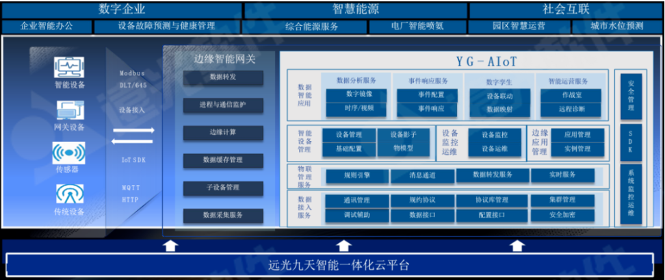 遠(yuǎn)光智能物聯(lián)平臺(YG-AIoT)是遠(yuǎn)光軟件基于“云、邊、端”一體化協(xié)同理念,創(chuàng)新推出的新一代智能物聯(lián)平臺,能為設(shè)備廠商、方案服務(wù)商、應(yīng)用開發(fā)商提供設(shè)備智能化、連接智能化、數(shù)據(jù)智能化、運維智能化的服務(wù)能力,滿足各類物聯(lián)網(wǎng)場景應(yīng)用需求,可有效支撐低碳智慧園區(qū)建設(shè),實現(xiàn)園區(qū)設(shè)施智慧管理。
