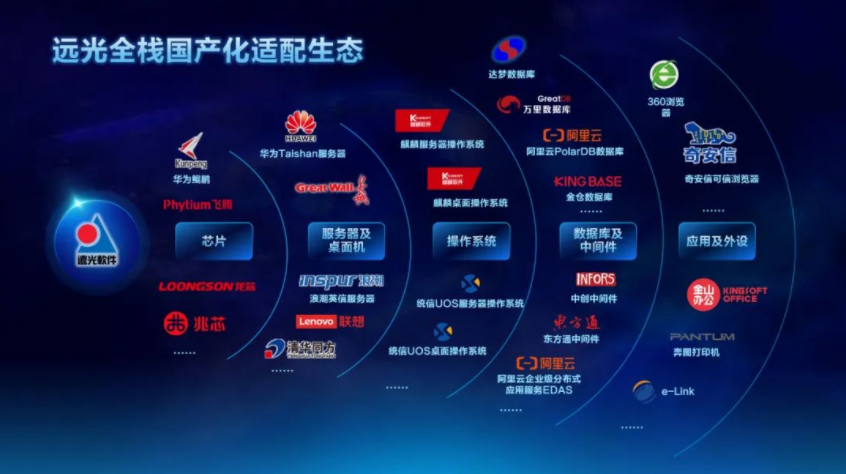 作為民族軟件品牌,遠(yuǎn)光軟件始終堅(jiān)持“自主可控軟件產(chǎn)品”發(fā)展方向、服務(wù)“安全可靠應(yīng)用替代”國家戰(zhàn)略的根本定位?;谌珬W灾骺煽考夹g(shù)路線,遠(yuǎn)光軟件遵循“以自主可靠的工具研發(fā)自主可靠的系統(tǒng),運(yùn)行在自主可靠的基礎(chǔ)設(shè)施之上”的理念,實(shí)現(xiàn)從底層基礎(chǔ)設(shè)施支撐到上層業(yè)務(wù)應(yīng)用的全棧信息技術(shù)創(chuàng)新應(yīng)用和適配,構(gòu)建起“全棧式、全過程、全方位”的信創(chuàng)生態(tài)體系,全方位兼容適配國產(chǎn)核心軟硬件產(chǎn)品,助力營造開放、健康、安全的數(shù)字生態(tài)。