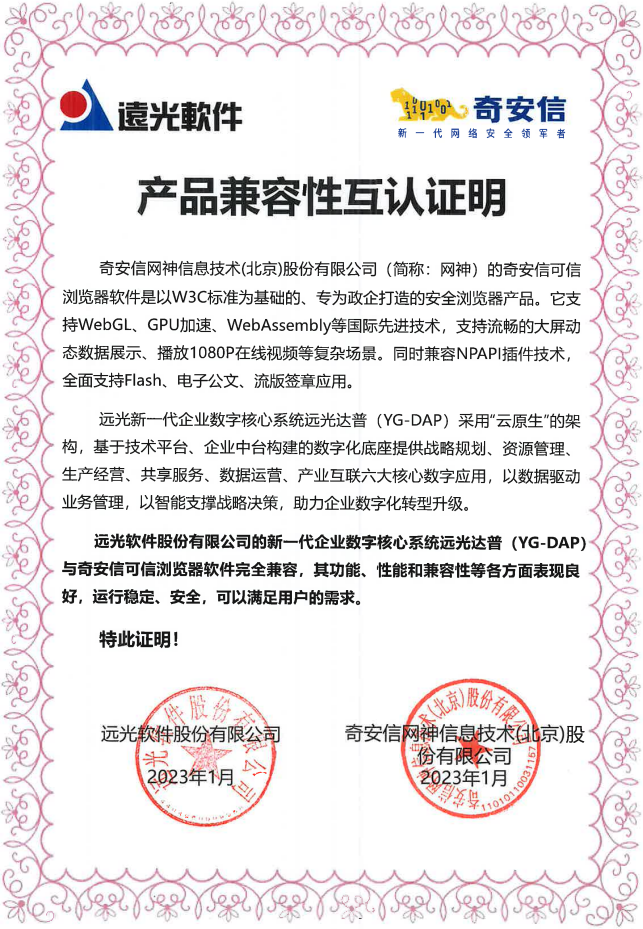 遠(yuǎn)光DAP運(yùn)行在全棧安全可靠的基礎(chǔ)設(shè)施上,實(shí)現(xiàn)全棧國(guó)產(chǎn)化適配,具備知識(shí)產(chǎn)權(quán)、核心技術(shù),產(chǎn)品發(fā)展自主可控,并通過(guò)工信部賽迪研究院等專業(yè)權(quán)威機(jī)構(gòu)測(cè)評(píng)。此次的產(chǎn)品兼容互認(rèn)證,充分發(fā)揮了雙方的優(yōu)勢(shì),未來(lái),遠(yuǎn)光軟件也將持續(xù)推進(jìn)信息技術(shù)自主可控創(chuàng)新,助力構(gòu)建良好的國(guó)產(chǎn)化軟件生態(tài)環(huán)境。