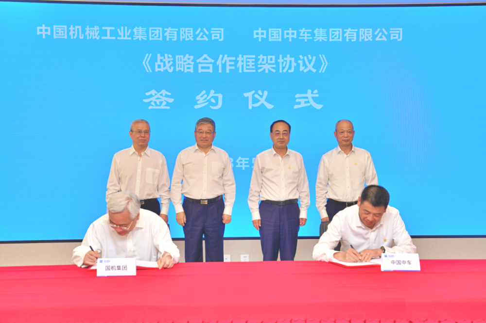 5月23日,中國中車與國機集團在京簽署《戰(zhàn)略合作框架協(xié)議》。中國中車黨委書記、董事長孫永才與國機集團黨委書記、董事長張曉侖舉行會談并出席簽約儀式。中國中車黨委常委、副總裁王宮成與國機集團黨委常委、副總經(jīng)理、總工程師陳學東代表雙方簽約。中國中車黨委常委、副總裁王軍出席簽約活動。