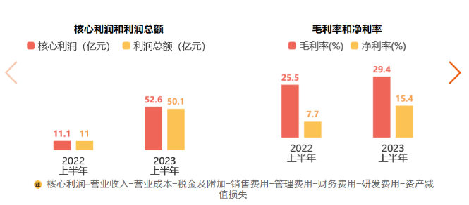 2023年上半年,公司毛利率為29.4%,相比去年同期的25.5%有所提升。公司凈利率高達(dá)15.4%,相比去年同期的7.7%也有明顯上揚(yáng)。(下圖來自東方財(cái)富網(wǎng))