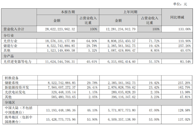 上半年,儲(chǔ)能系統(tǒng)營收為85.2274億元,占營收比重高達(dá)29.78%。