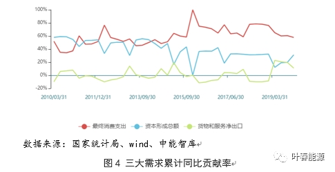 同時(shí),從消費(fèi)、投資和國外三大需求累計(jì)同比對(duì)GDP貢獻(xiàn)率看,消費(fèi)對(duì)經(jīng)濟(jì)增長的貢獻(xiàn)率逐步成為中流砥柱,而投資形成貢獻(xiàn)率趨于穩(wěn)定。