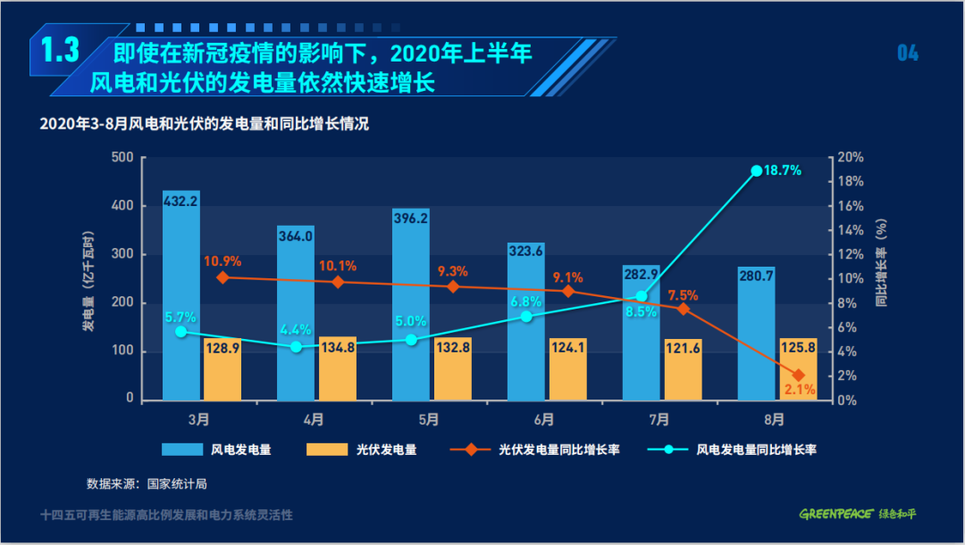 截至2019年底,全國非化石能源發(fā)電量為2.39萬億千瓦時,占全國發(fā)電量的32.6%,實現(xiàn)2030年非化石能源發(fā)電量占比50%的目標(biāo)已過半程。而即使是在2020年新冠疫情的壓力下,中央政府也沒有松懈綠色復(fù)蘇和轉(zhuǎn)型的決心,今年上半年風(fēng)電和光伏的發(fā)電量分別同比逆勢增長了6.8%和9.1%。在已提前實現(xiàn)了“十三五”可再生能源裝機目標(biāo)之際,今年6月,國家發(fā)改委和能源局進一步提高了目標(biāo),計劃今年內(nèi)風(fēng)電和光伏發(fā)電裝機均達到240吉瓦左右。