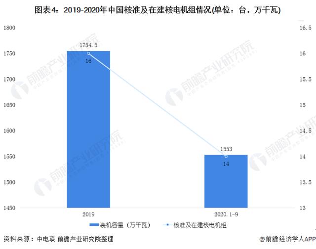 根據(jù)中電聯(lián)的數(shù)據(jù)顯示,截至2019年底,我國(guó)核準(zhǔn)及在建核電機(jī)組16臺(tái),裝機(jī)容量1754.5萬千瓦,位居世界第一。而截止到2020年9月底,在建核電機(jī)組14臺(tái),總裝機(jī)容量1553萬千瓦。