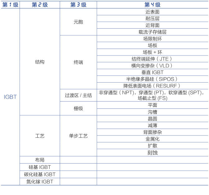 2.報告給出了IGBT的技術(shù)分類表,如下(部分):